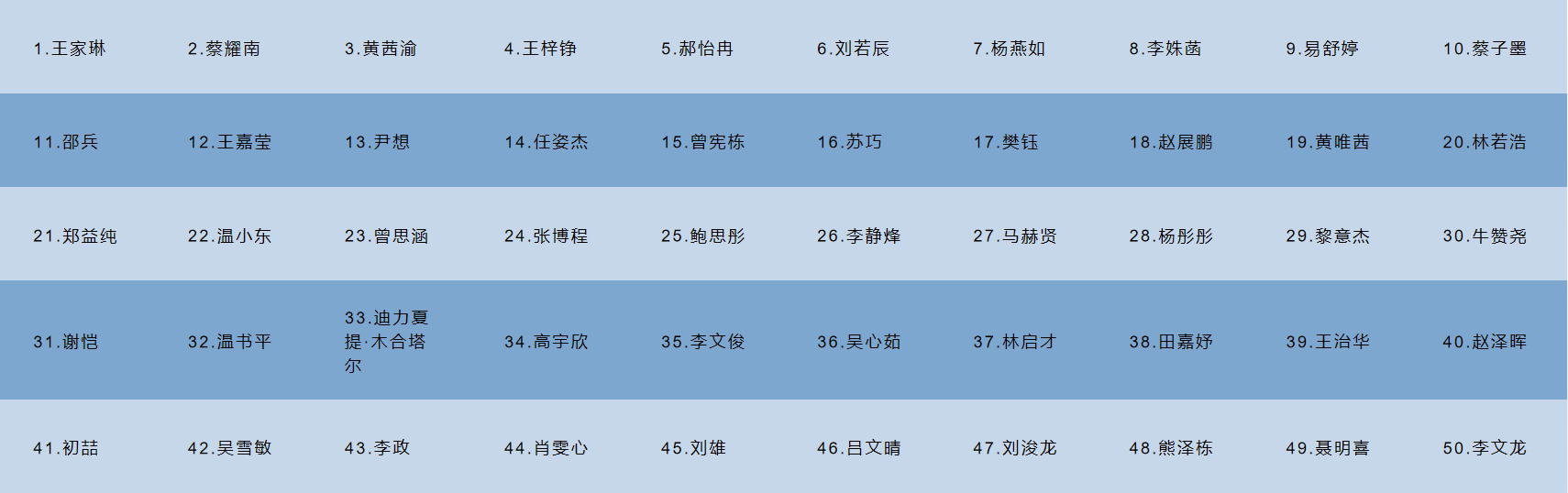 经过综合考核环节的评价,本次夏令营共有50位营员被评选为优秀营员,名单如下: