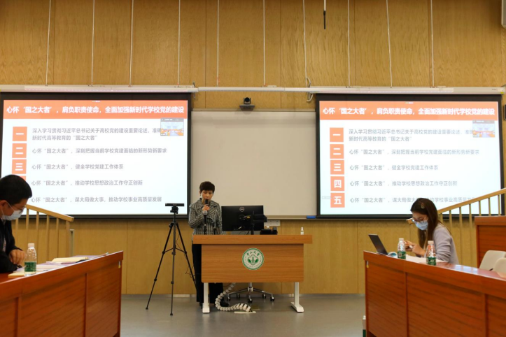 会上,戴红晖书记首先传达了陈春声书记《心怀“国之大者”,肩负职责使命,全面加强新时代学校党的建设》主题报告。春声书记报告中指出,要深入学习贯彻习近平总书记关于高校党的建设重要论述,准确把握新时代高等教育“国之大者”的深刻内涵,牢记新时代党和国家事业发展的需要,抓好立德树人根本任务,不断提高人才培养能力和人才培养质量。要深刻把握当前学校党建面临的新形势和新要求,不断加强学校党建工作体系,推动学校思政工作守正创新,以全面加强新时代学校党的建设,促进学校事业内涵式高质量发展。
