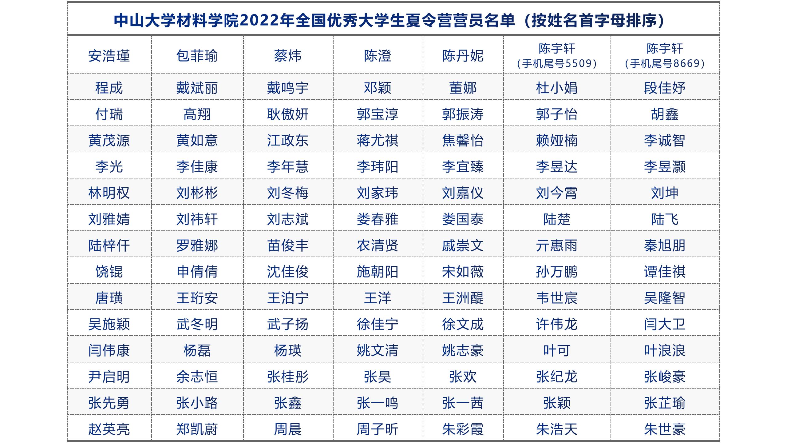 经材料学院夏令营营员资格审核小组对报名材料进行资格审核、综合评议,现将学院2022年全国优秀大学生夏令营入营营员名单公布如下: