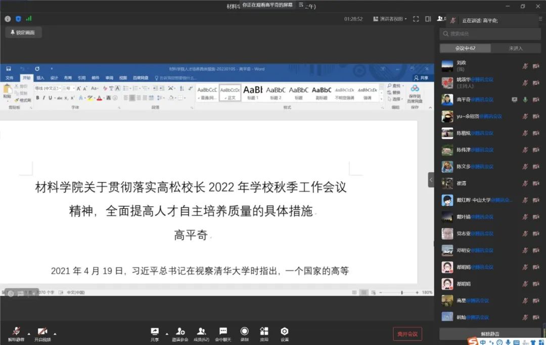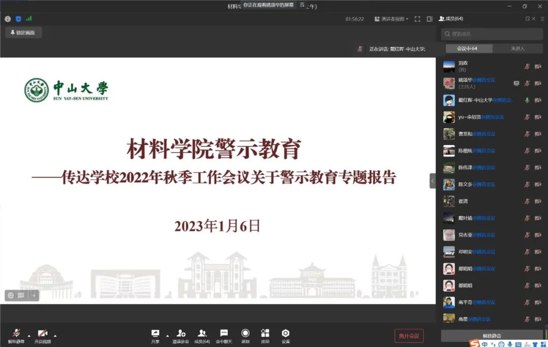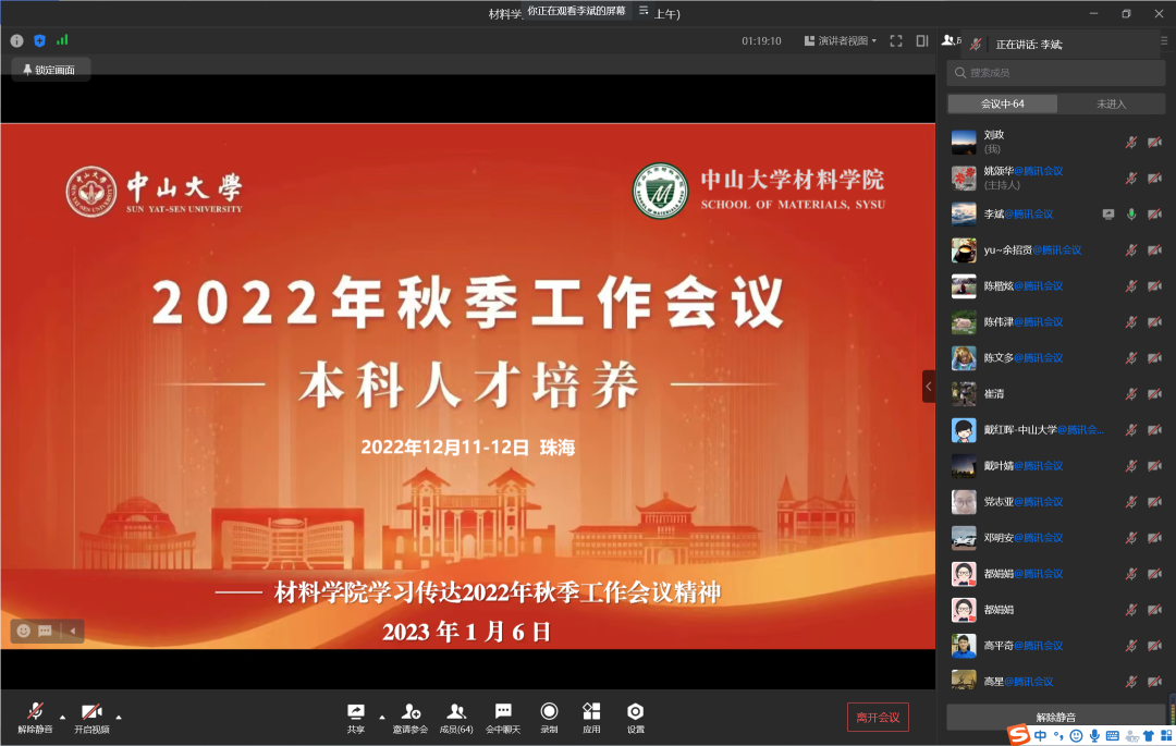 1月6日上午,材料学院召开全体教职工大会学习贯彻学校2022年秋季工作会议精神。因疫情原因,会议采用线上方式召开,全体教职工参会。
