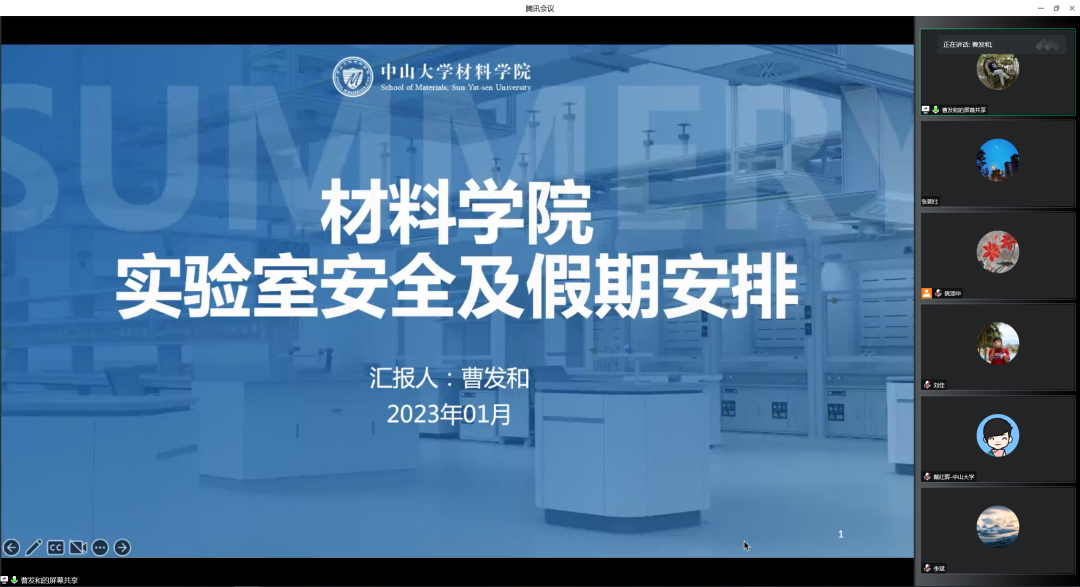 曹发和院长助理就寒假实验室管理进行了工作布置。他希望师生继续加强有关规章制度的学习,切实落实各级责任,放假前请各实验室完成自查,排查隐患,及时整改。学院将组织全院安全大检查,推进整改。假期学院将安排安全巡查,做好值班工作及突发应急事件处置。