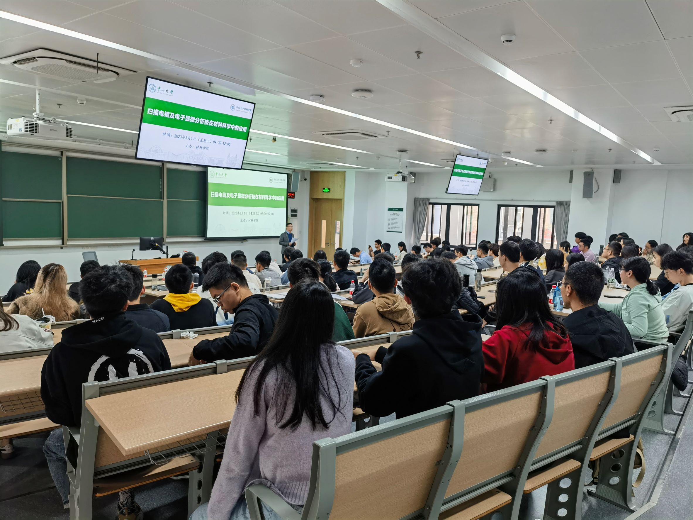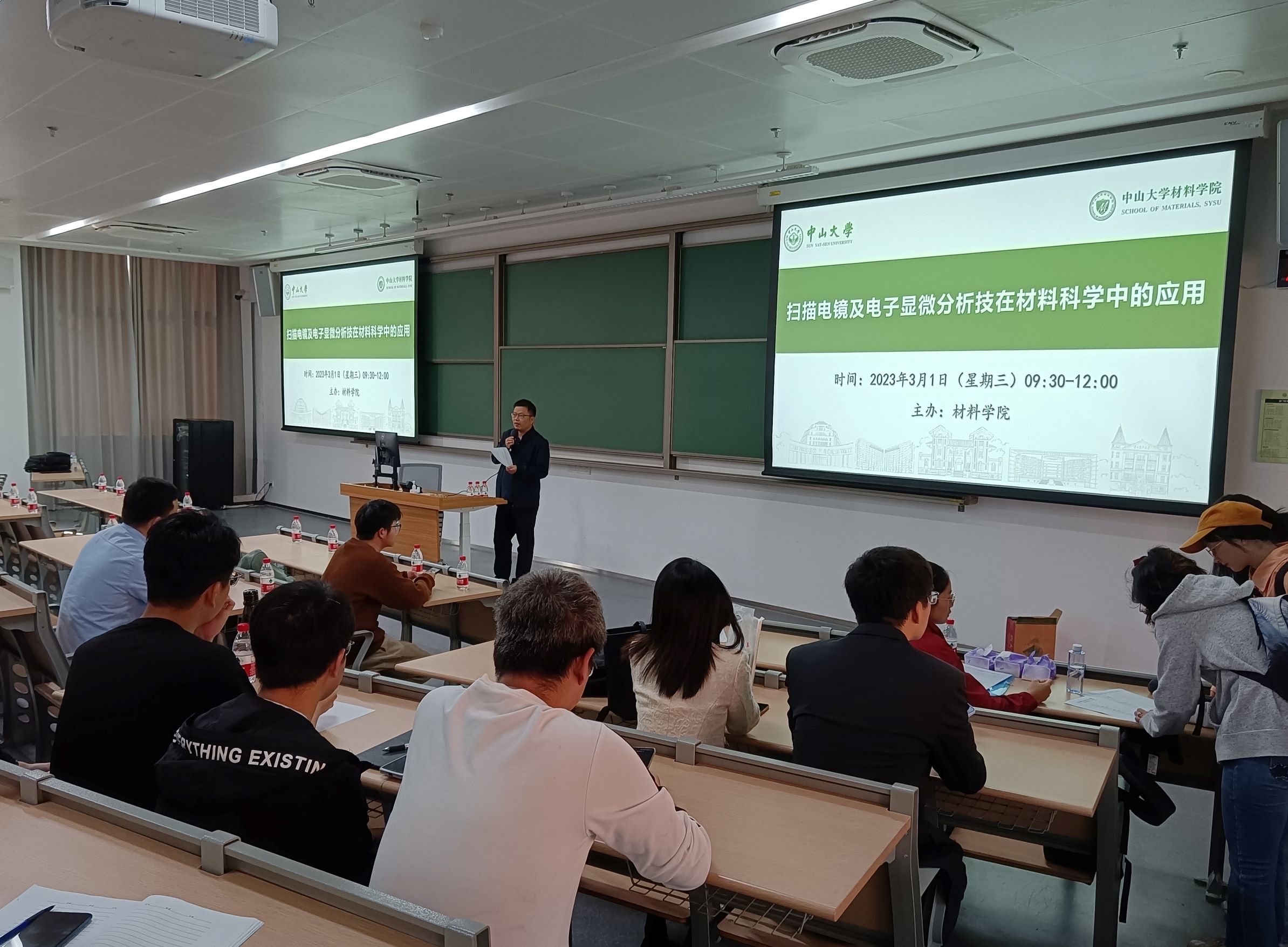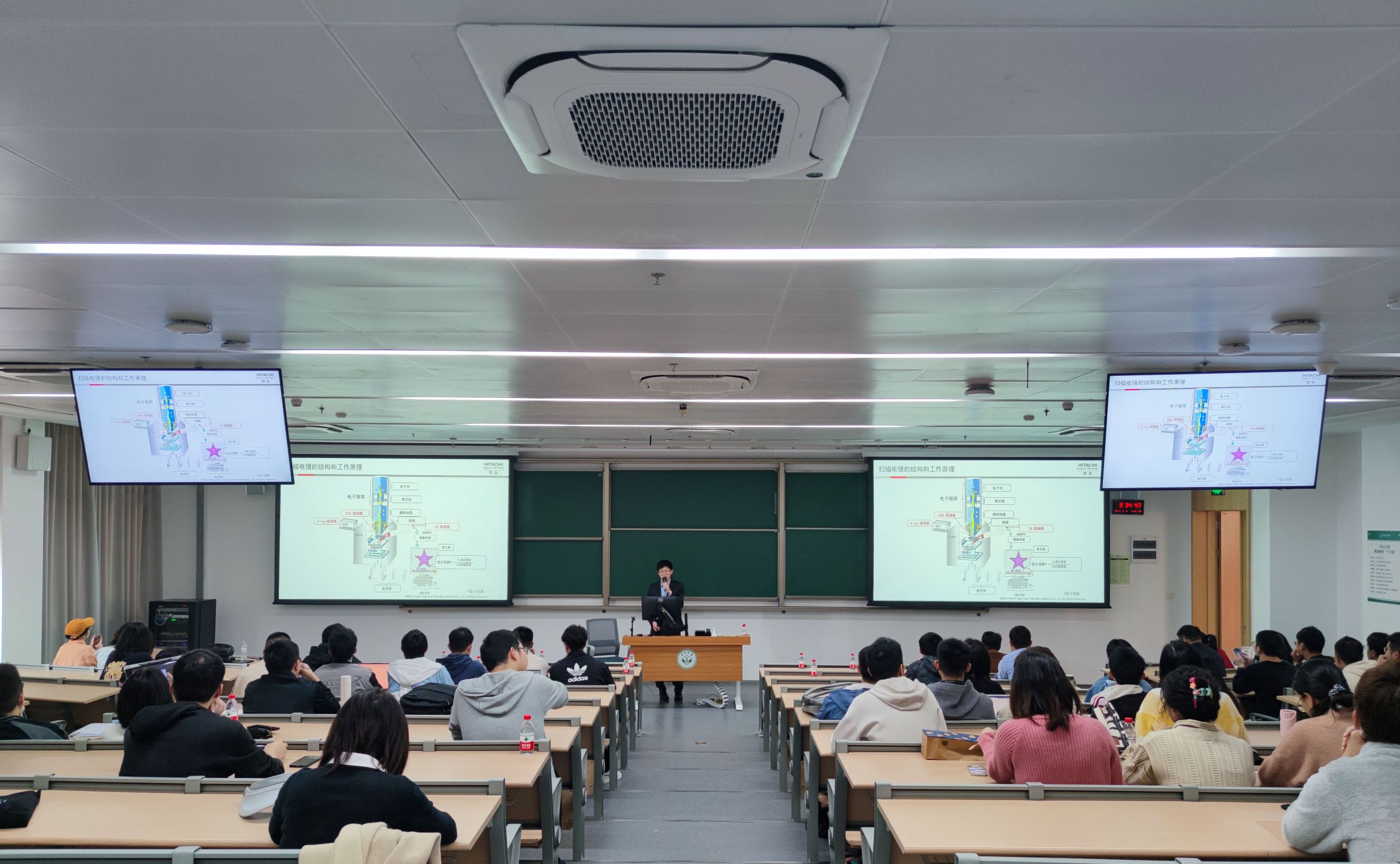 为使我院师生更加深入地了解扫描电镜技术及其应用,充分发挥大型仪器设备功能,提高使用效率。2023年3月1日上午,材料学院实验教学中心邀请日立科学仪器(北京)有限公司市场部部长高敞和Bruker-布鲁克(北京)科技有限公司应用工程师韦家波,在深圳校区举办了扫描电镜及电子显微分析技术在材料科学中的应用讲座。会议由实验教学中心主任曹发和教授主持,副主任李财富副教授以及一百余位师生参加了本次讲座。