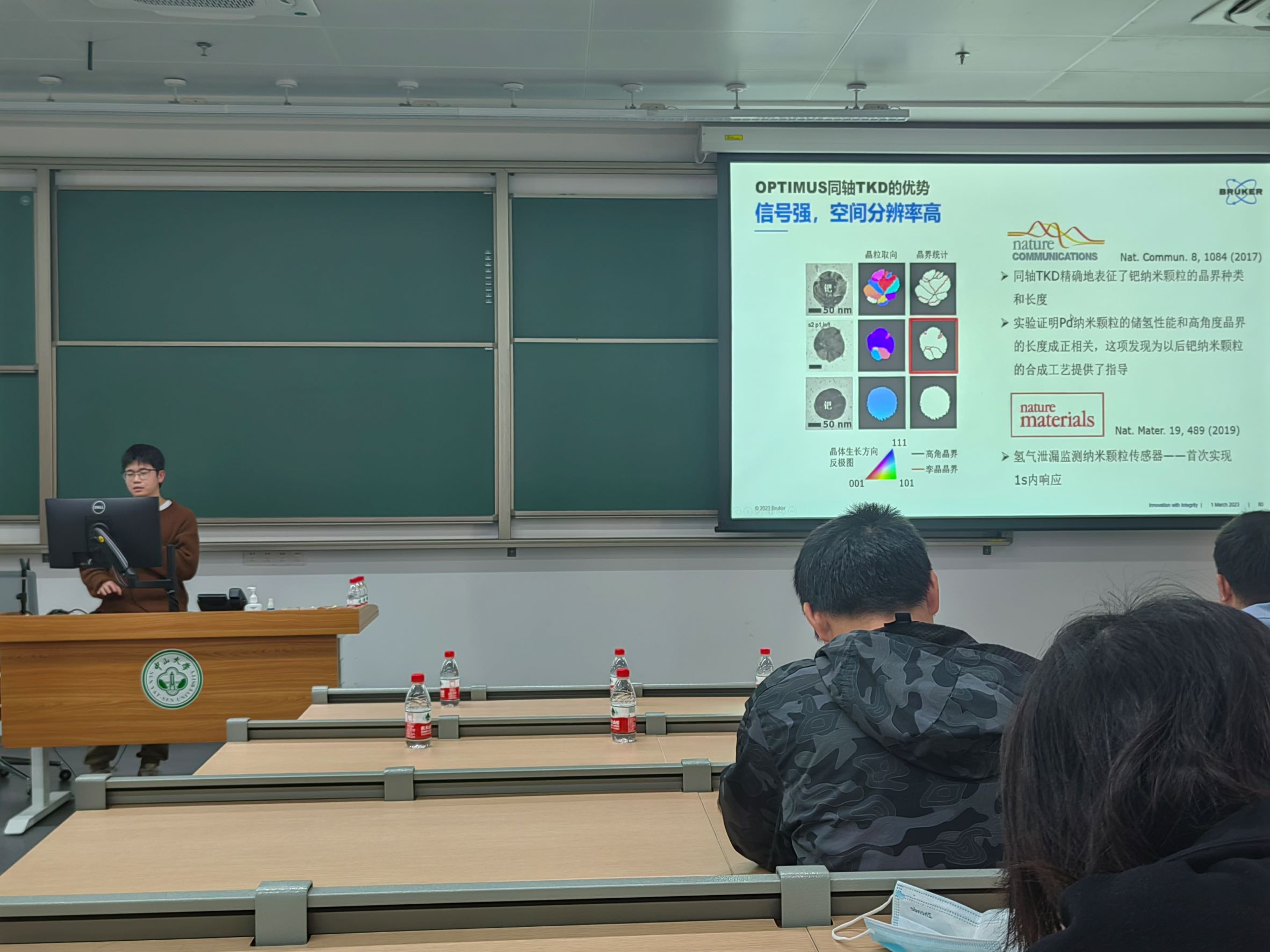 在交流讨论环节,同学们结合自身科研中遇到的问题,就扫描电镜操作、图像质量、EBSD制样等方面进行了热烈讨论。