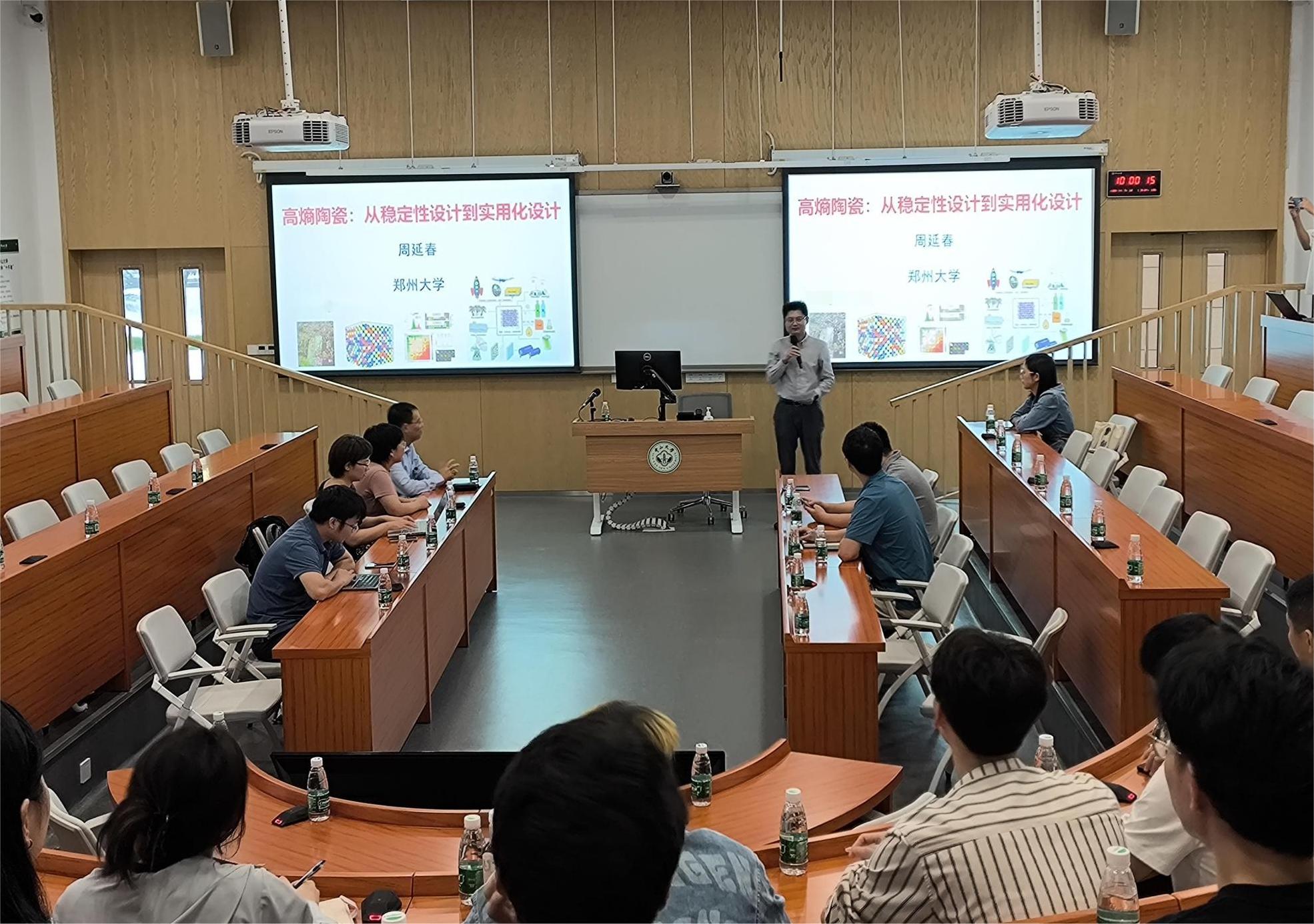 本次讲座主讲人为国家杰出青年基金获得者、世界陶瓷科学院院士、亚太材料科学院院士、美国陶瓷学会会士、郑州大学的周延春教授,主题为“高熵陶瓷:从稳定性设计到实用化设计”。讲座由材料学院副院长李斌教授主持,四十余名师生参加。
