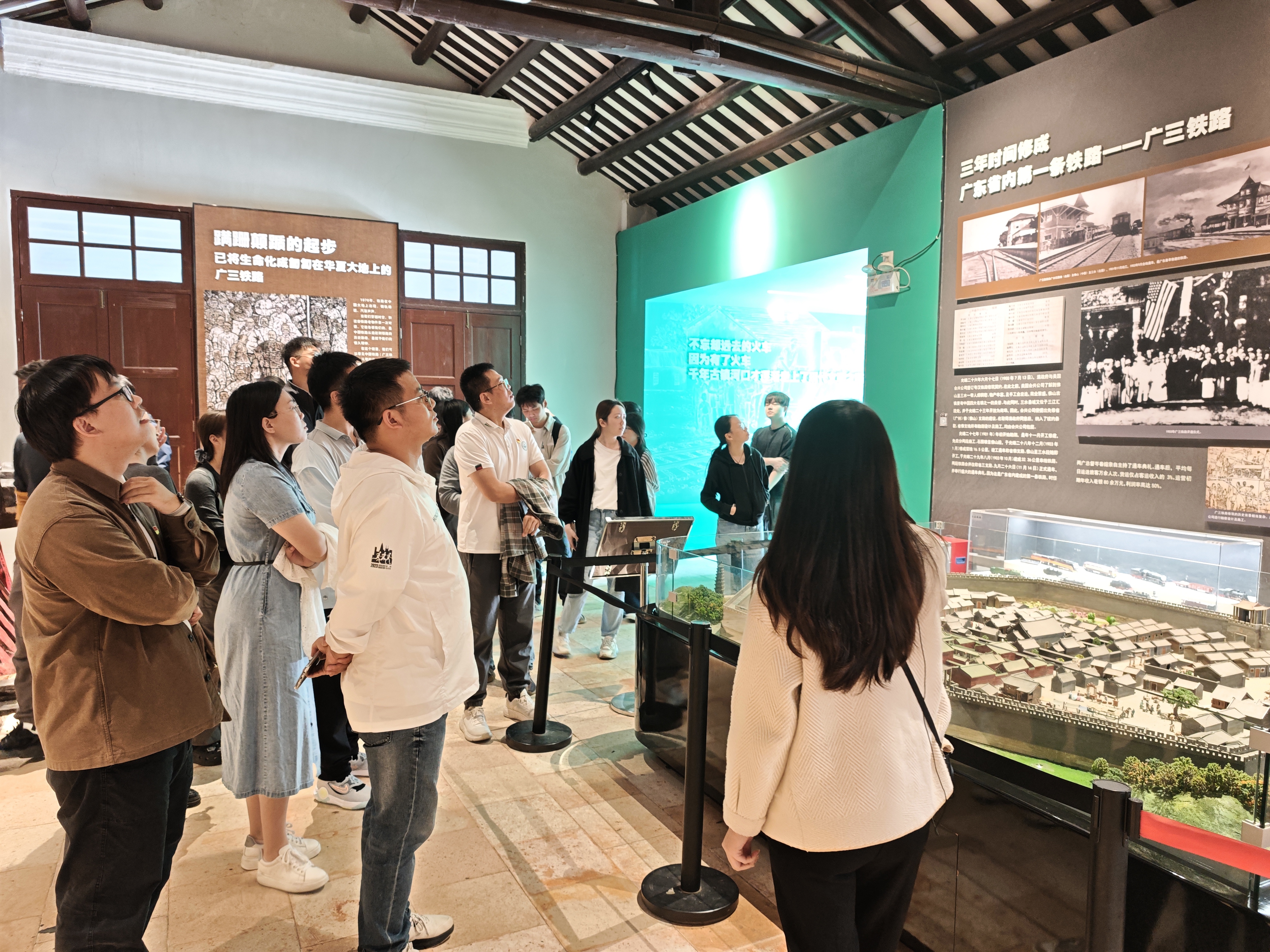 随后,师生党员们前往广三铁路河口火车站旧址。这座广东最古老的火车站之一,见证了1903年建成的中国最早复线铁路的百年变迁,更镌刻着共产党人领导工农运动的光辉历史。大家通过图文史料、珍贵实物和互动体验,重温了省港大罢工、抗日战争等历史时期,广三铁路工人与社会各界在中国共产党领导下的斗争历程,深刻感悟“奋斗百年路启航新征程”的时代内涵。