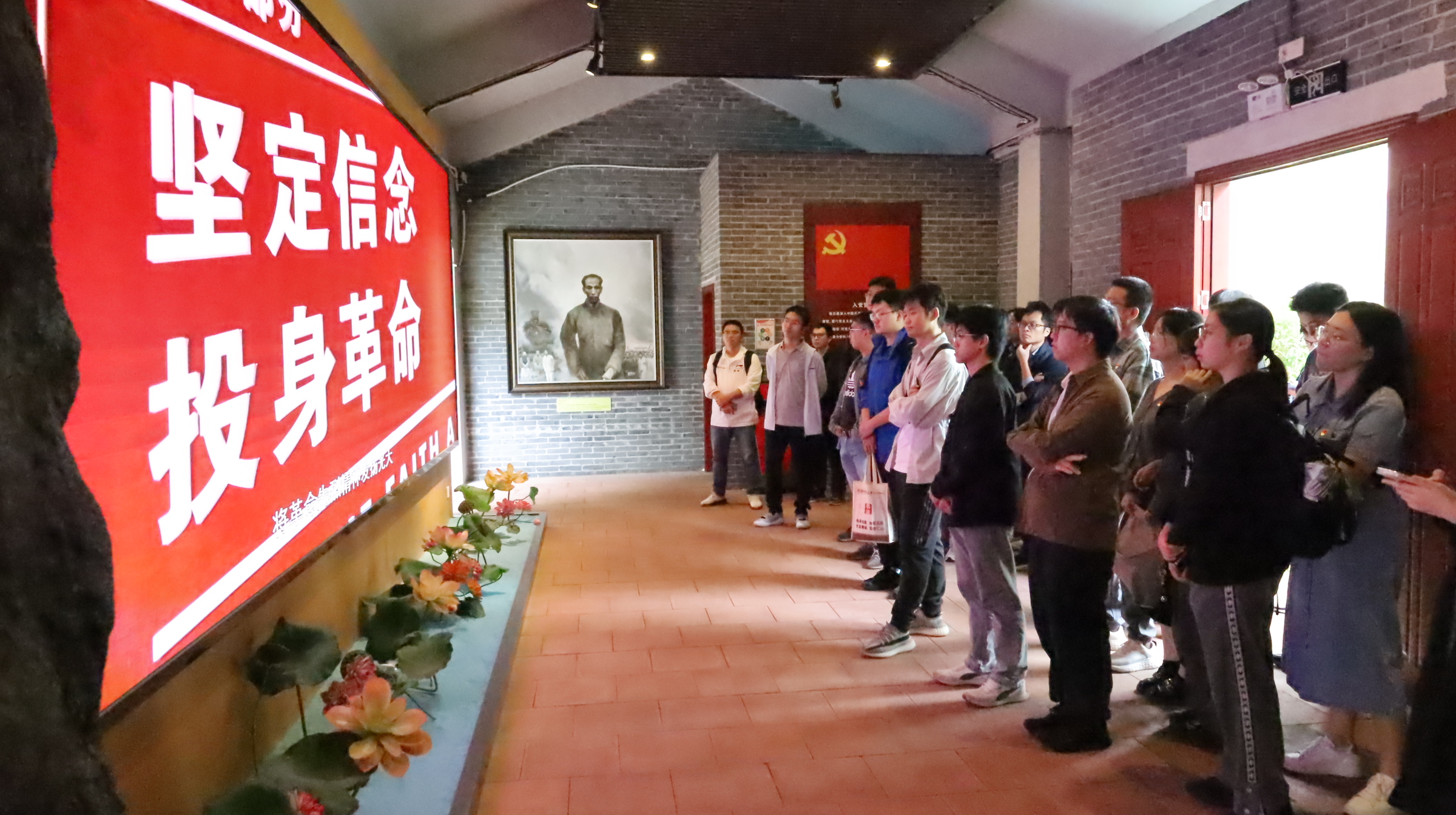 6日上午,师生党员一行首站抵达邓培故居。作为中国工人阶级的杰出代表、早期工人运动的先驱,邓培的革命事迹通过展板和实物一一立体呈现。在教学点教师的带领下,大家循着邓培14岁投身革命、加入中国共产党、领导铁路工人运动的奋斗轨迹,深入了解他列席中共二大、当选中共三大、四大中央候补执行委员和中华全国总工会执行委员会委员、副委员长等革命历程,深切缅怀其为中国人民解放事业献出宝贵生命的崇高气节。
